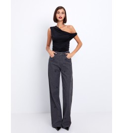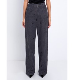 Wide leg τζιν με μαύρες πέτρες toi&moi 20-5544-225
