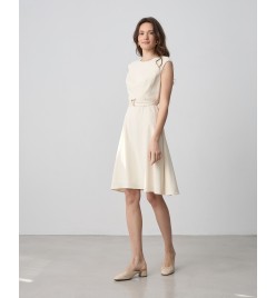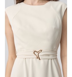 Φόρεμα midi κοντομάνικο με στρογγυλή λαιμόκοψη .