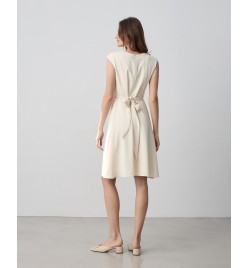 Φόρεμα midi κοντομάνικο με στρογγυλή λαιμόκοψη,