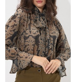 Μπλούζα εμπριμέ, λαιμόκοψη με δέσιμο σε φιόγκο .