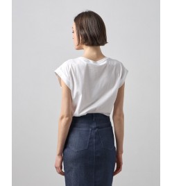 Short-sleeved round neck blouse.