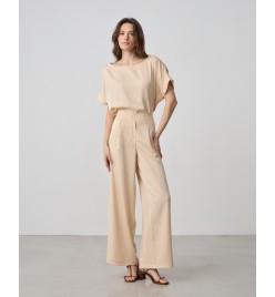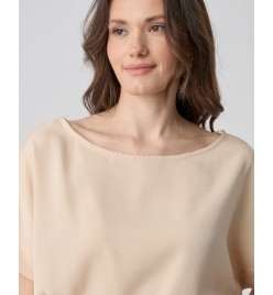 Short-sleeved blouse, smile neckline .