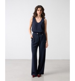 High-waisted pants with pleats .